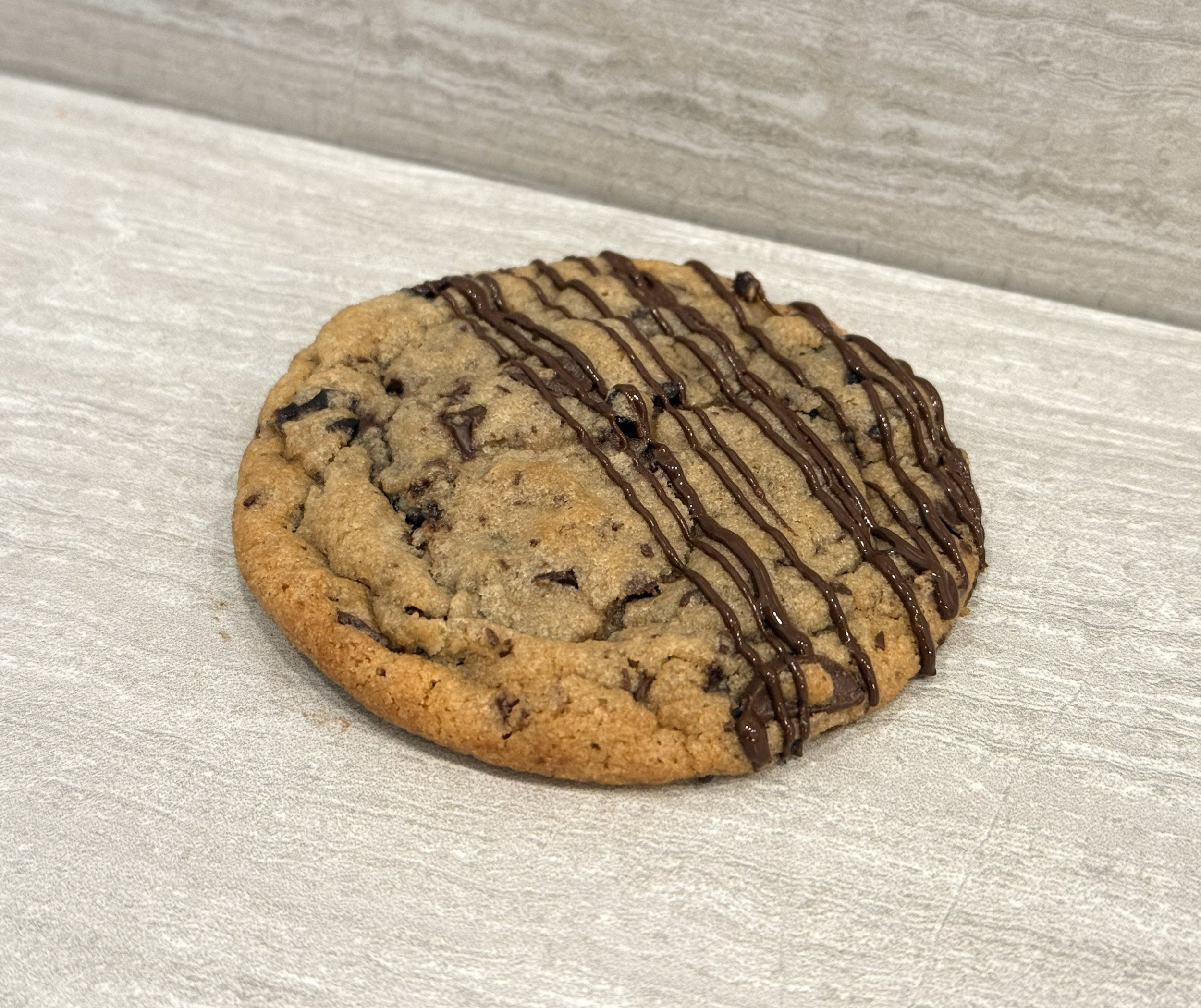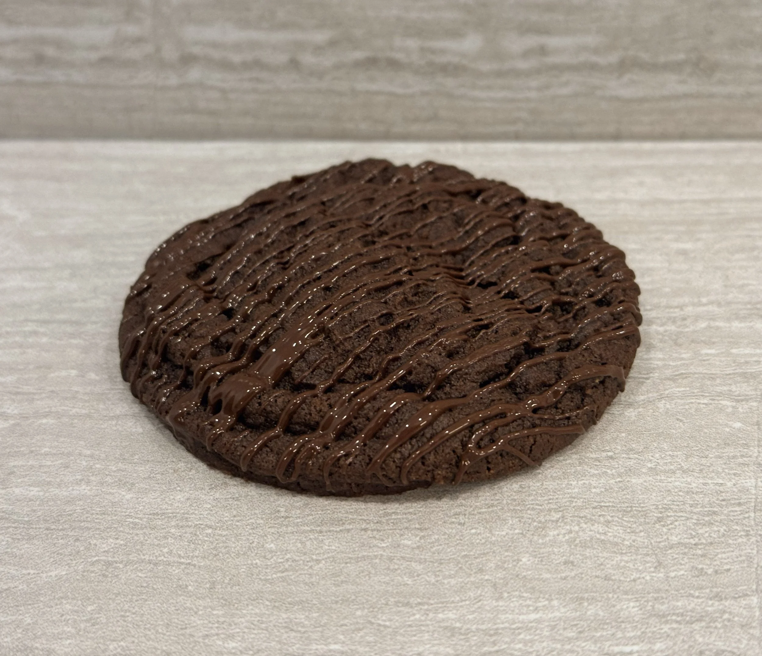 this dark chocolate cookie features a deep cocoa base and is finished with a smooth dark chocolate drizzle