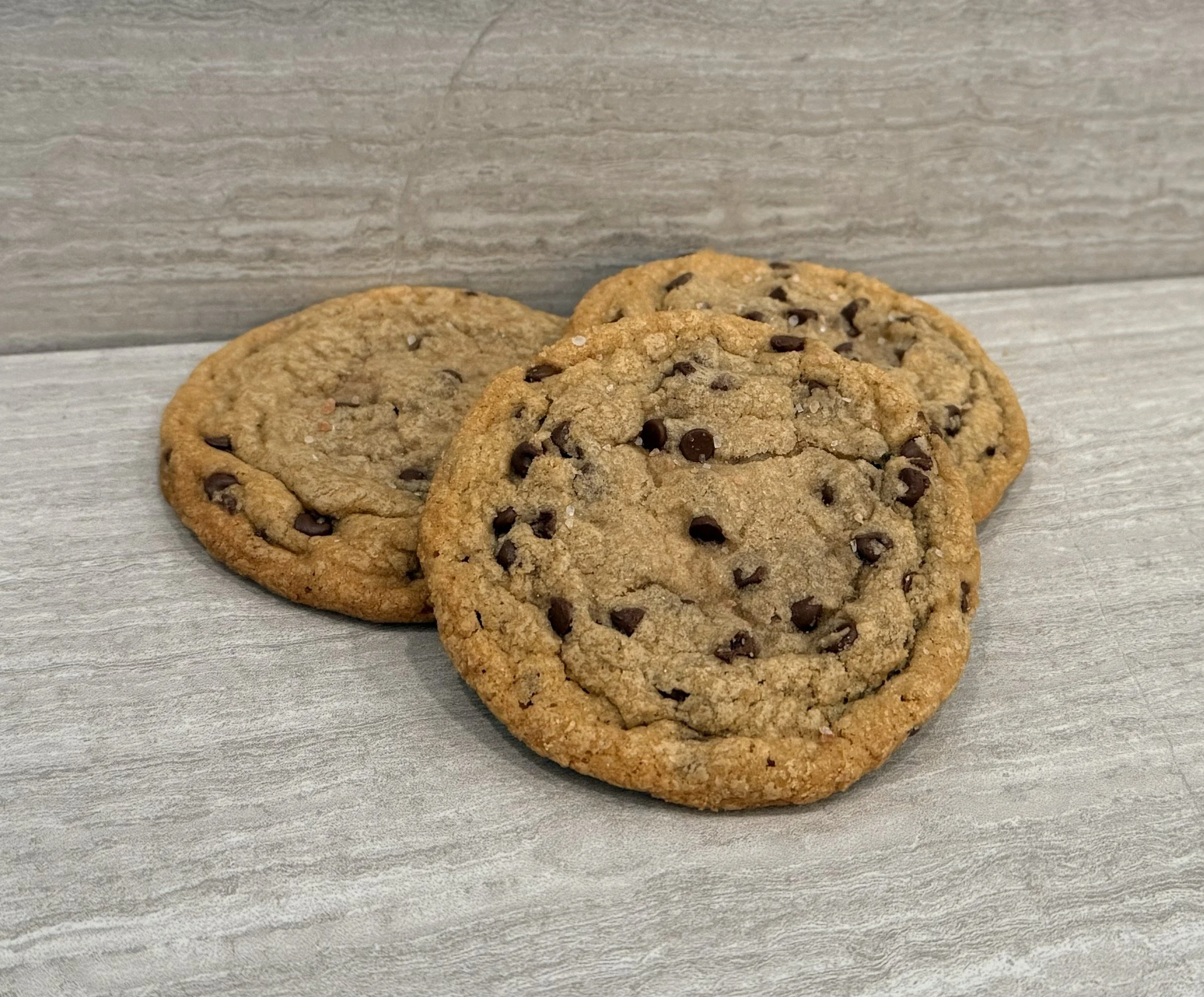 a classic chocolate chip cookie with crisp edges, a soft center, and rich chocolate throughout